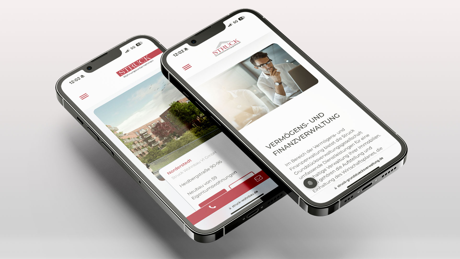Seit 1996 gestaltet rau kommunikation das gesamte Corporate Design für das Unternehmen. Als Agentur für Marken-, Web- und Printdesign entwickeln wir umfassende Konzepte und Designs für digitale sowie gedruckte Medien. Dazu gehören die Gestaltung und Programmierung der Websites für Struck Wohnbau, die Grundstücksverwaltung und den Immobilienhandel. Zusätzlich erhalten einzelne Bauprojekte eigene Landingpages, die nach den neuesten SEO-Standards optimiert werden sowie maßgeschneiderte Printmaterialien zur Unterstützung des Vertriebs.